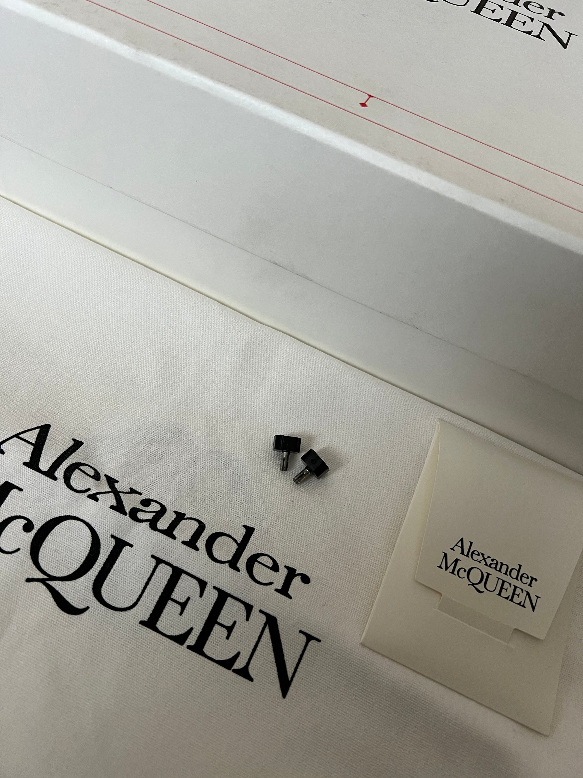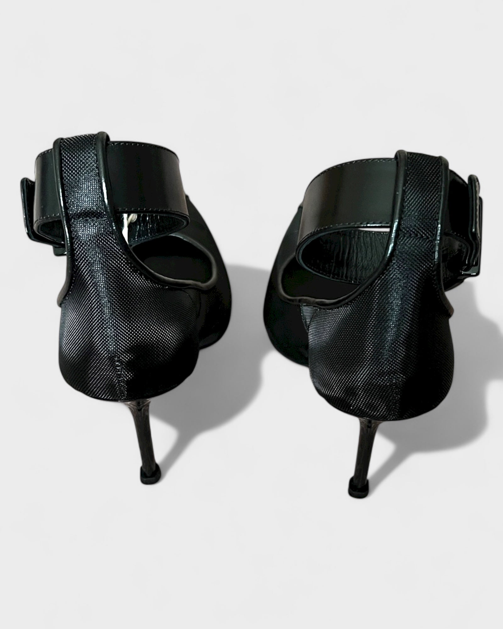 Extravagant, feminin und kompromisslos edgy: Die „Buckle“ Pumps von Alexander McQueen setzen ein selbstbewusstes Statement. Gefertigt aus glänzendem Lackleder in tiefem Schwarz, bestechen sie durch die markante Schnallenmanschette am Knöchel – ein ikonisches Detail der Marke.