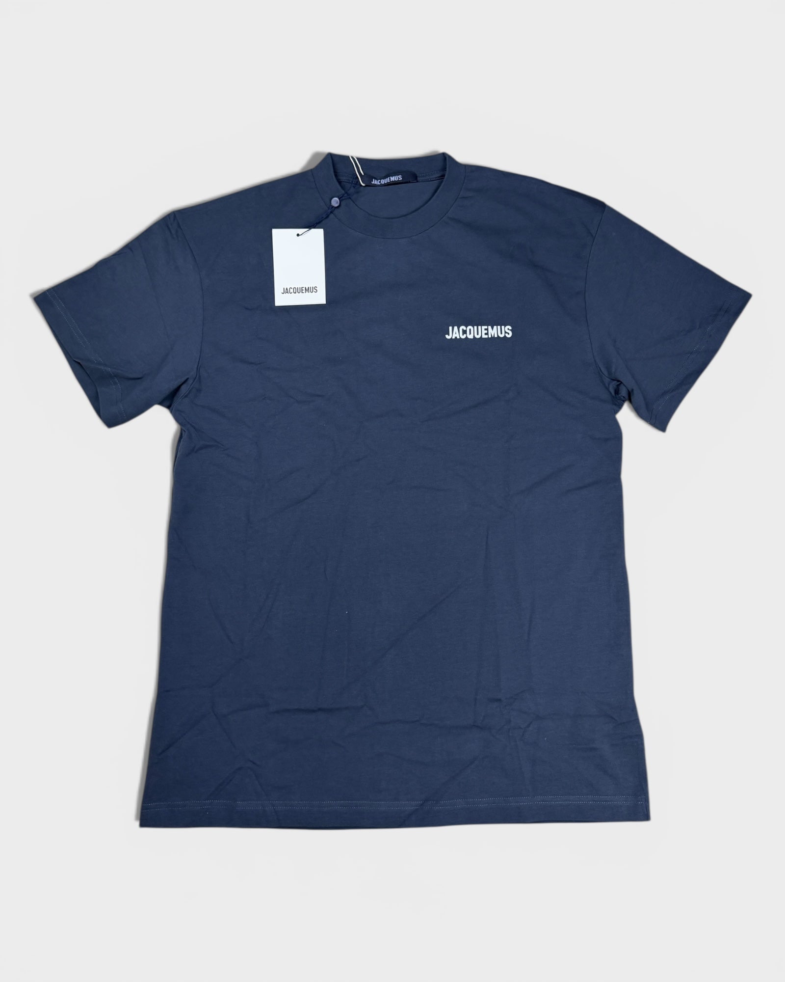 Dieses T-Shirt von Jacquemus überzeugt durch seine cleane Ästhetik und das ikonische Markenlogo in Weiß auf der Brust. Der tiefe Navyton sorgt für einen eleganten, aber sportlichen Look – ein vielseitiges Basic für jeden Kleiderschrank.