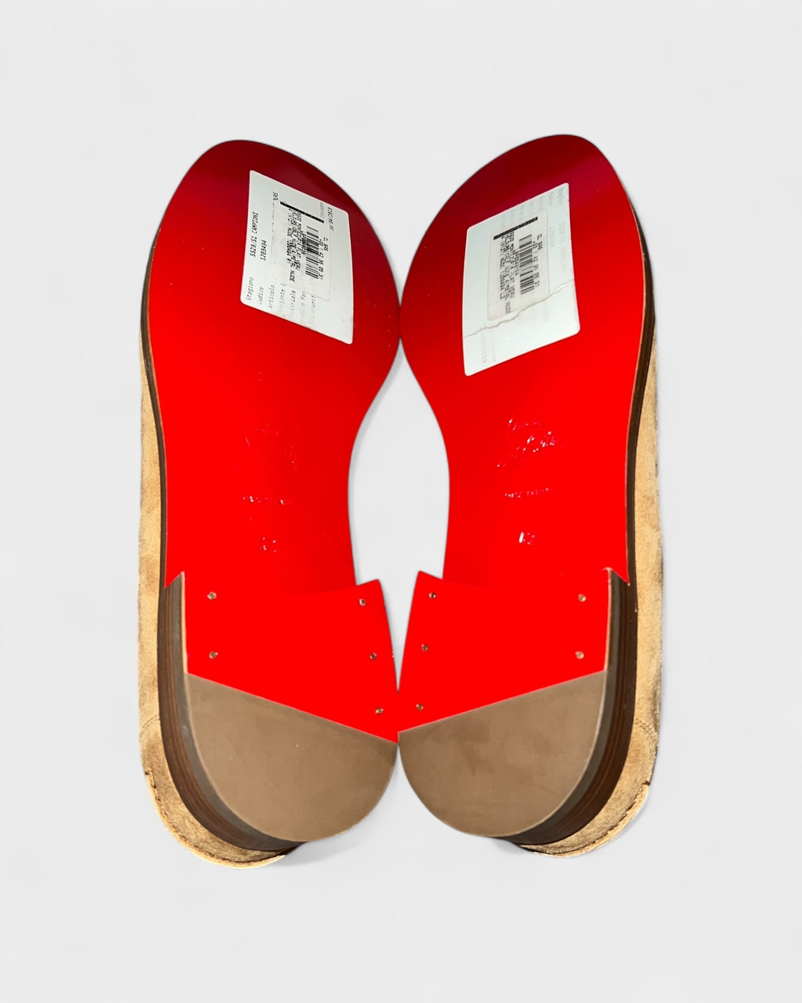 Ein stilvoller Blickfang: Die „Dandelion Spikes“ von Christian Louboutin verbinden klassische Loafer-Ästhetik mit avantgardistischem Charakter. Das weiche Veloursleder in edlem Camel-Ton trifft auf ikonische Spikes und das typische Cut-Out-Detail – ein Design, das modische Kühnheit ausstrahlt.