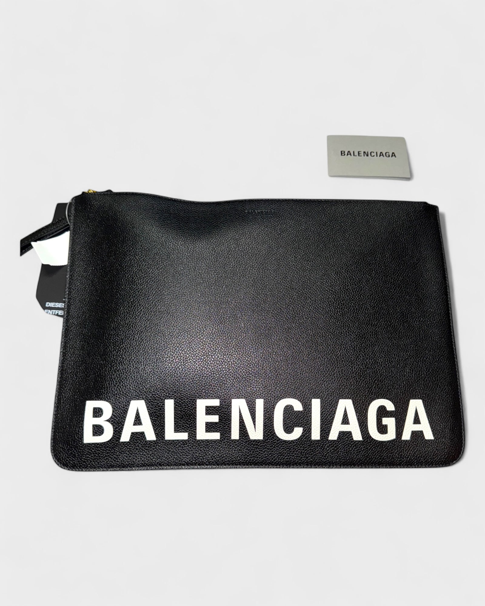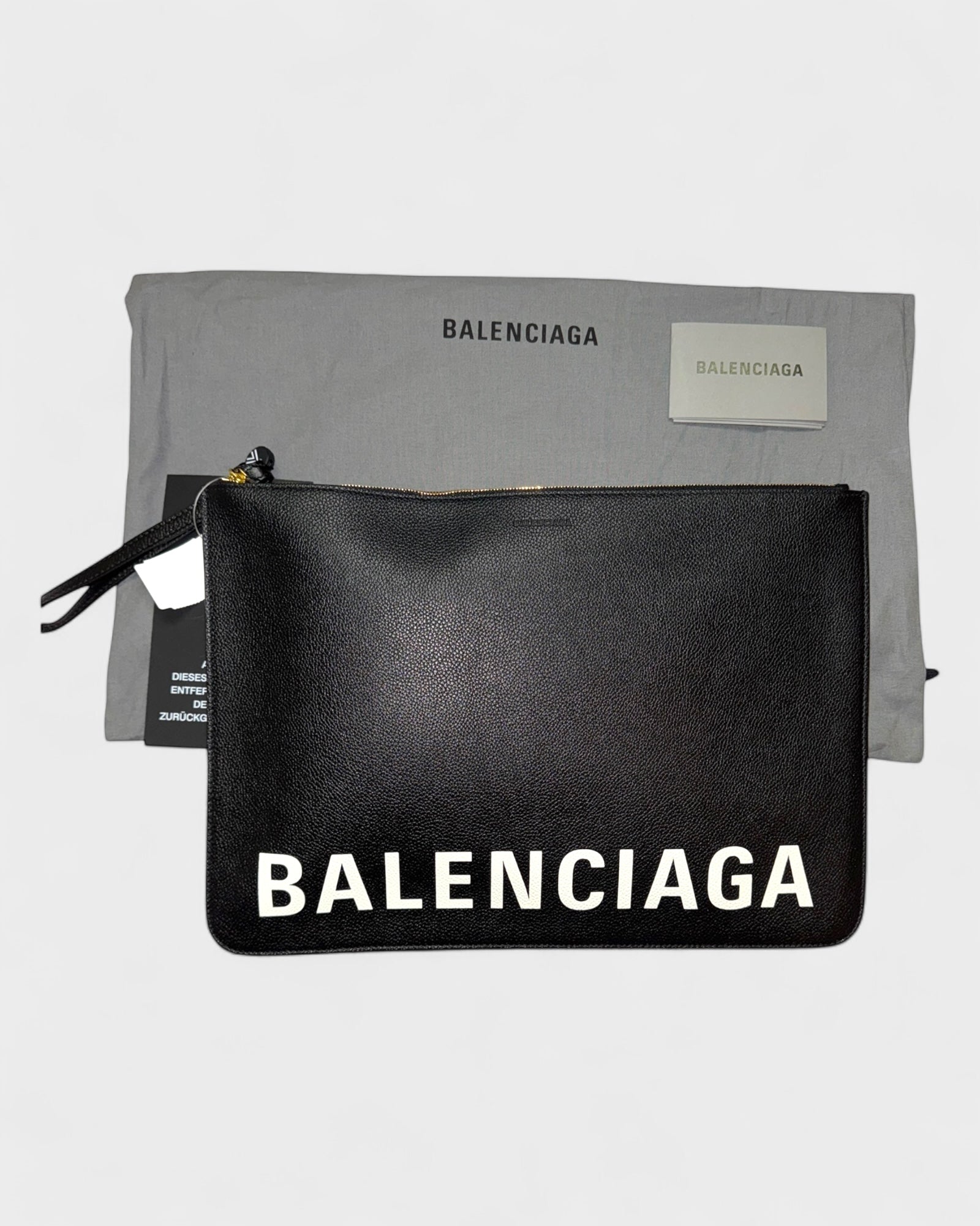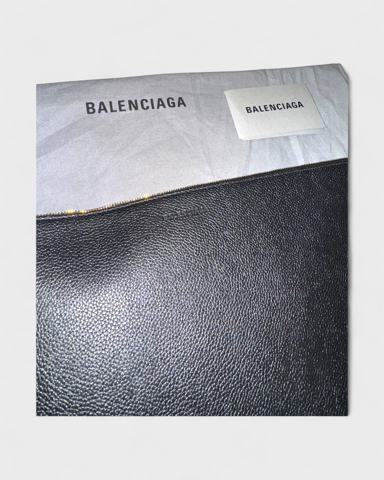 Die elegante Pouch von Balenciaga überzeugt mit minimalistischer Form und maximaler Wirkung. Aus hochwertigem, strukturiertem Kalbsleder gefertigt, trägt sie den ikonischen Balenciaga-Schriftzug in Kontrast-Optik auf der Vorderseite.