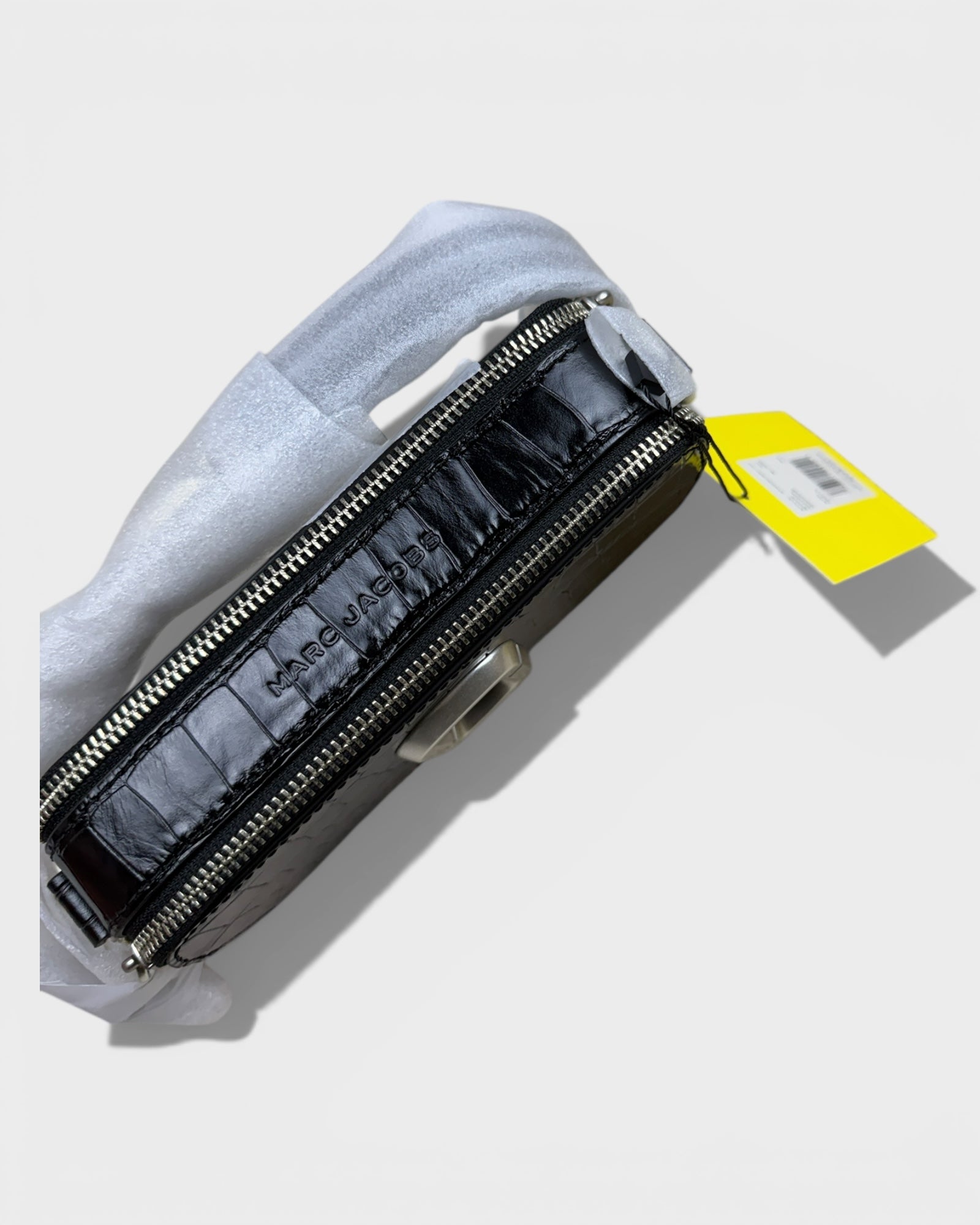 Die ikonische „Snapshot“ Tasche von Marc Jacobs erhält mit dieser Ausführung ein edgy Update: Glänzendes Kunstleder in Kroko-Optik trifft auf eine auffällige Gliederkette als Schulterriemen – ein echtes Statement-Piece für stilbewusste Looks.