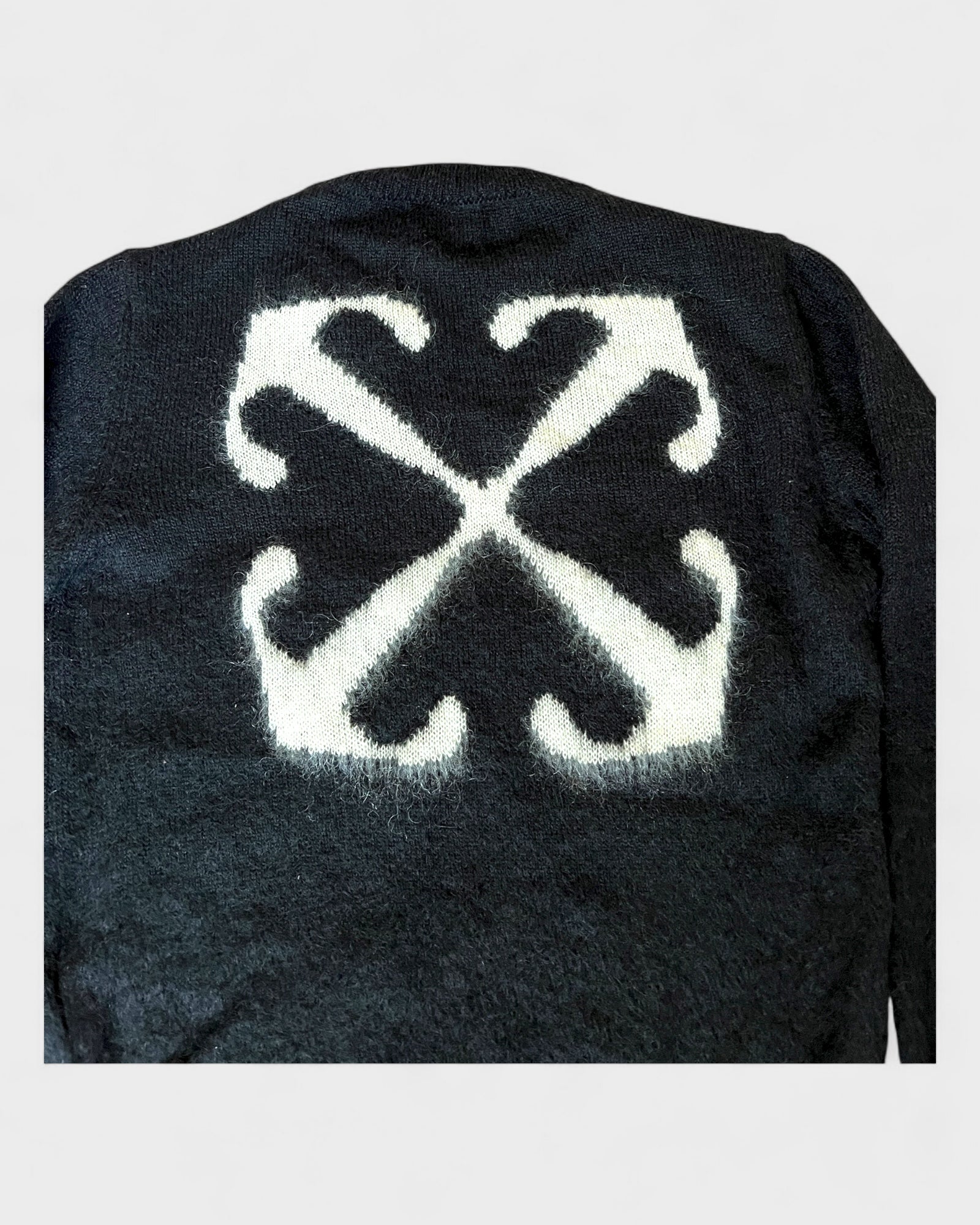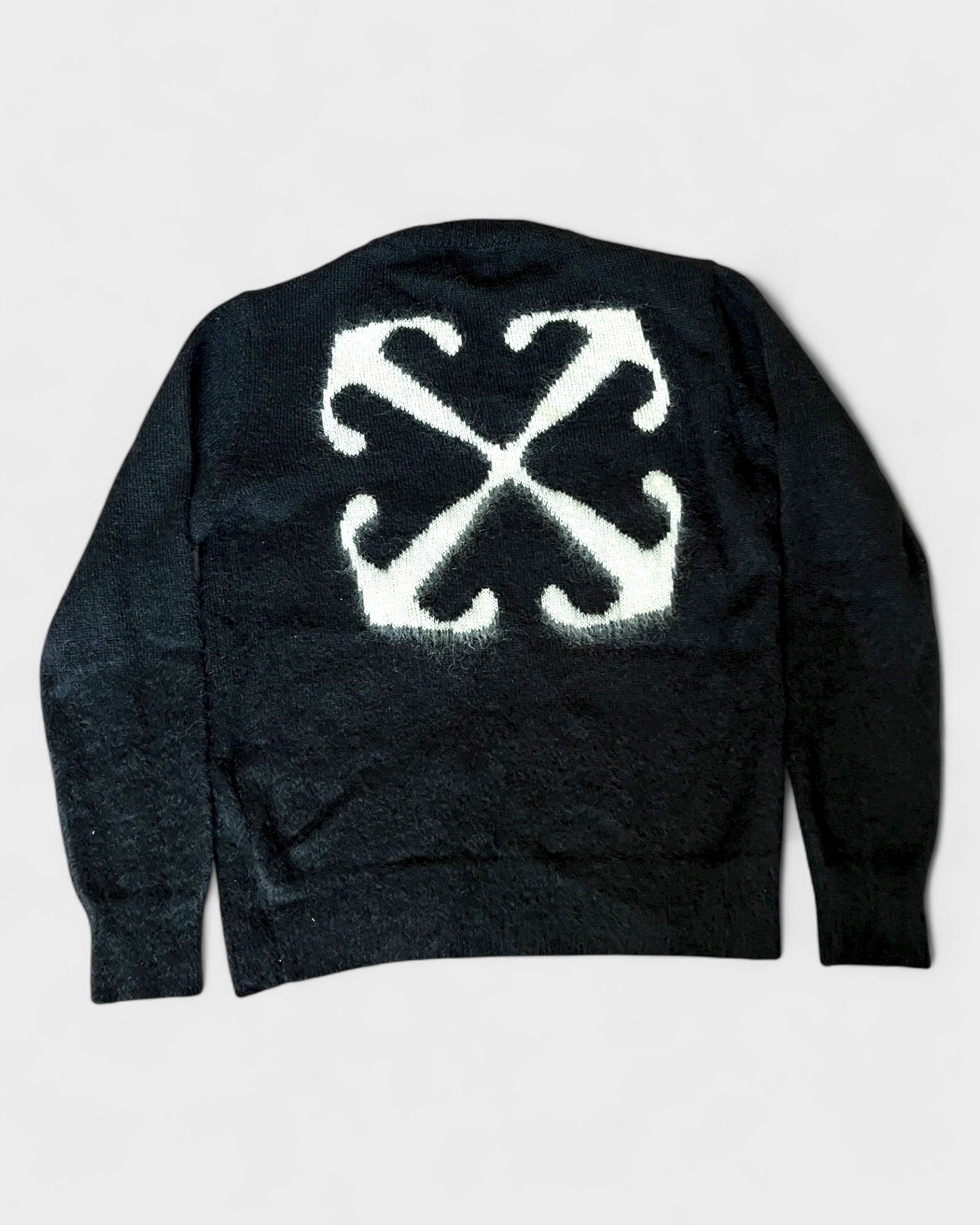 Dieser luxuriöse Pullover von Off-White überzeugt durch seine flauschige Textur und das ikonische „Fuzzy Arrows“-Logo auf dem Rücken. Gefertigt aus einer hochwertigen Materialmischung mit leichtem Stretchanteil, bietet er ein angenehmes Tragegefühl und eine moderne Passform. Die Vorderseite bleibt schlicht, während die Rückseite mit dem kontrastierenden Logo zum echten Hingucker wird – ideal für stilbewusste Looks mit Streetwear-Attitüde.